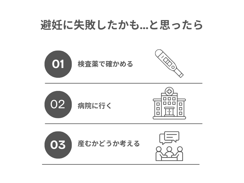 避妊に失敗したかもしれないと思ったとき、どうしたらいいでしょうか。焦るかもしれませんが、次に示す順番の通りにやっていきましょう。